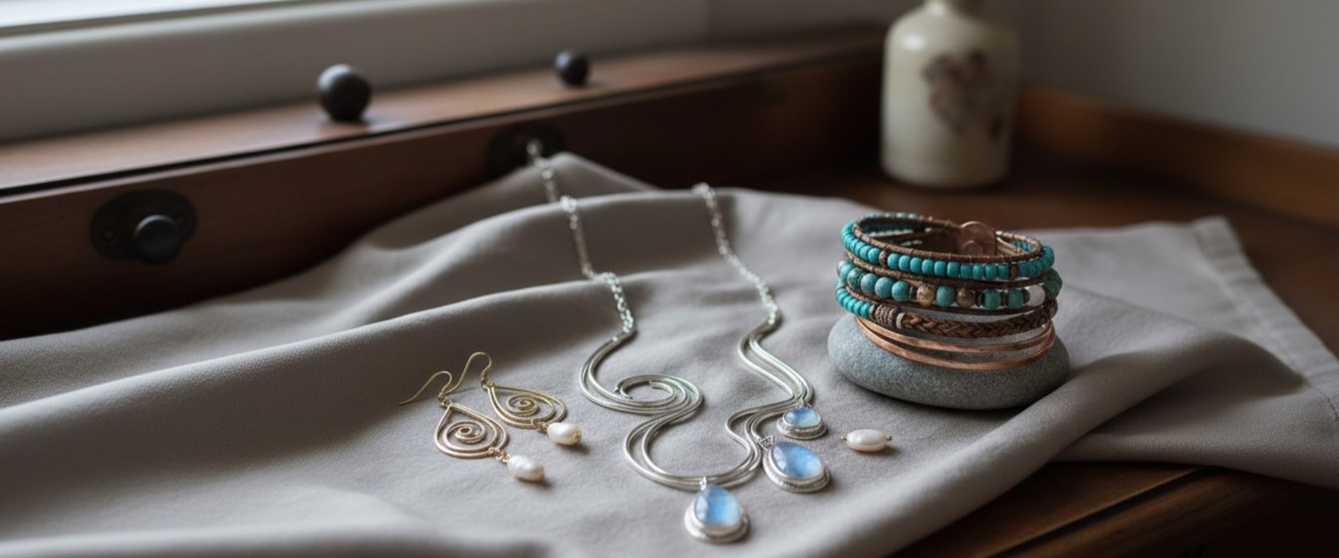 Discover our stunning collection of handcrafted jewelry, including elegant necklaces, delicate earrings, and stylish bracelets, designed to complement your unique style and add a touch of glamour to any look.